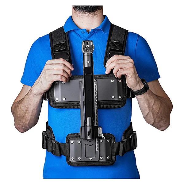 Для установки сканера XGRIDS Lixel L2 Pro 32/120 RTK Survey Grade на горизонтальной плоскости, например, в процессе первичной активации, к ручке-аккумулятору может присоединяться основание. Оно снабжено отверстием в передней части, выполняющим функции ориентира для размещения на контрольных точках с координатной привязкой – когда ГНСС приемник не задействован. При доустановке дополнительного крепления прибор может фиксироваться на опциональной телескопической штанге или разгрузочном жилете.