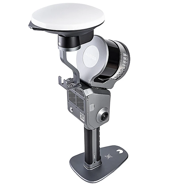 Для установки сканера XGRIDS Lixel L2 Pro 32/120 RTK Survey Grade на горизонтальной плоскости, например, в процессе первичной активации, к ручке-аккумулятору может присоединяться основание. Оно снабжено отверстием в передней части, выполняющим функции ориентира для размещения на контрольных точках с координатной привязкой – когда ГНСС приемник не задействован. При доустановке дополнительного крепления прибор может фиксироваться на опциональной телескопической штанге или разгрузочном жилете.