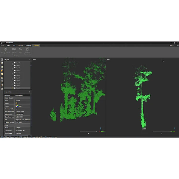 • выполнять автоматическое распознавание деревьев и вычислять показатели лесного массива, таких как биомасса и объем ствола;