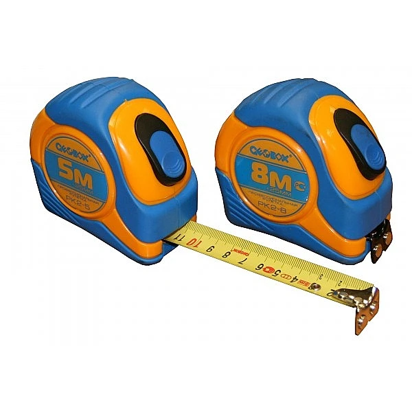 Корпус рулеток малой длины (до 20 м) от GEOBOX выполнен из высокопрочного пластика. Такое решение позволило до минимума уменьшить размеры и вес инструмента. Для большего комфорта пользователя корпус обрезиненРК2-8 GEOBOX - рулетка со стальной лентой с нейлоновым покрытием. В рулетке РК2-8 GEOBOX реализована уникальная система автоматической блокировки сматывания ленты, что позволяет выполнять большинство работ одной рукой. Покрытая полимерной краской лента оснащена зацепом с магнитным фиксатором. Внесена в реестр средств измерений РФ. 2 класс точности.длина 8 м ширина 25 мм автостоп магнитный зацеп Сертификат