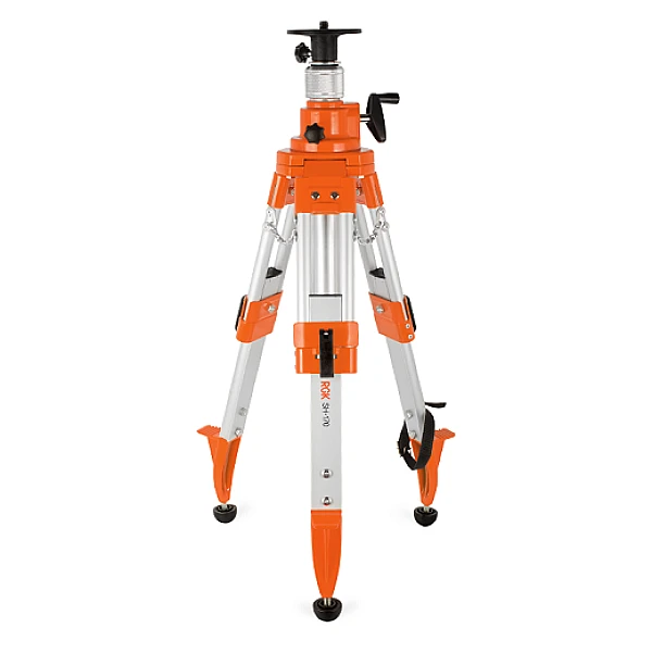 SH-170 – элевационный штатив для установки ротационных лазерных нивелиров. Подъёмный механизм позволяет устанавливать прибор на высоте до 170 см. Ножки штатива снабжены острыми наконечниками для установки на грунте, увеличенный до 5,5 кг вес повышает устойчивость прибора.