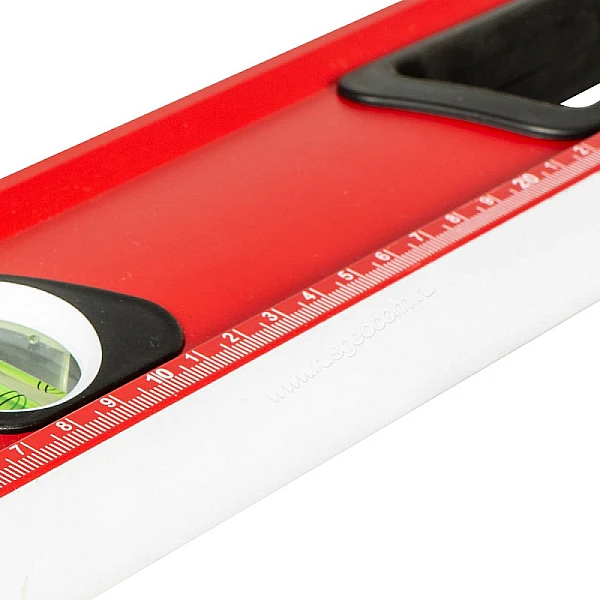 Линейка с ценой деления шкалы 1 мм поможет при разметке поверхностей. Засечки и подписи белого цвета на строительном уровне RGK U7060 выполнены методом гравировки. Они не подвержены истиранию от частого контакта с такими поверхностями, как бетон или дерево.