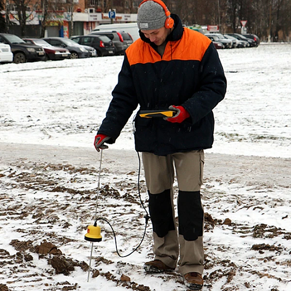 Поиск трассы электропроводящей коммуникации при помощи электромагнитного датчика (ЭМД).
