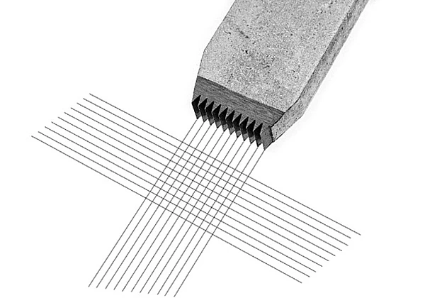 Тестер адгезии покрытий методом решетчатых надрезов Elcometer 1540 представляет собой простой прибор для быстрой оценки адгезии покрытий различных красок толщиной слоя до 50 мкм. Для получения решетки в 100 квадратиков прибор делается два надреза под углом 90 градусов друг к другу. Результаты испытания оцениваются по специальной таблице.