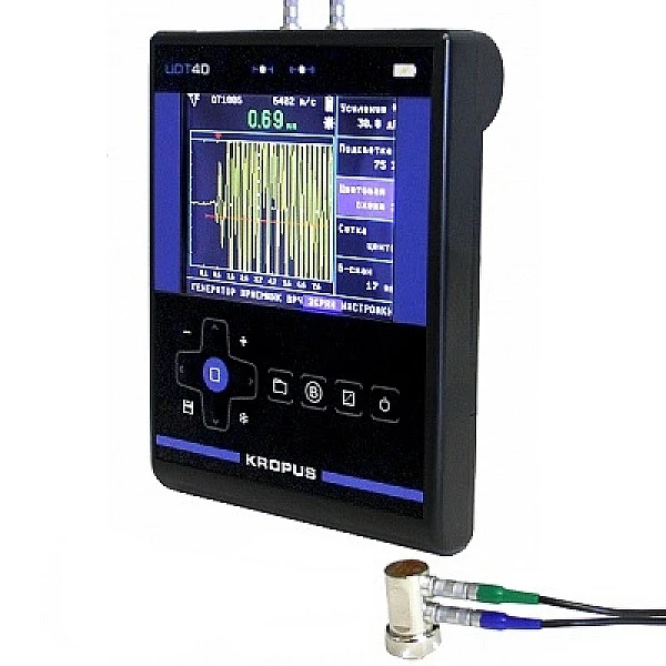 Толщиномер УДТ40 (UDT40) предназначен для измерения толщины стенок ёмкостей, труб, трубопроводов, толщины мостовых, корпусных, транспортных и других конструкций и изделий, в том числе с корродированными поверхностями, в процессе их эксплуатации или изготовления на энергетических, трубопрокатных, машиностроительных, судостроительных, судоремонтных, транспортных и других предприятиях. Встроенные контуры согласования в сочетании с тремя степенями электрического демпфирования делают возможным измерение любыми совмещенными и раздельно-совмещенными преобразователями с частотами 0,5−15 МГц.