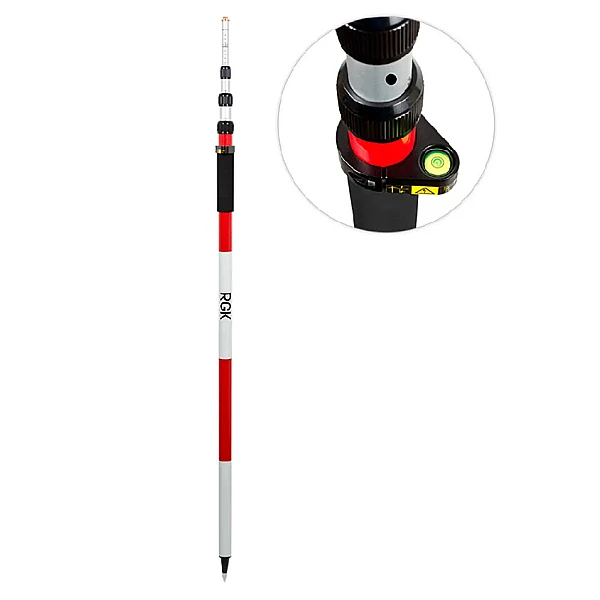 Алюминиевая телескопическая веха RGK CLS46-CL для установки призм (отражателей) и внешних GPS-антенн на высоте до 4,6 м. Фиксация высоты осуществляется металлическими поворотными кольцами.