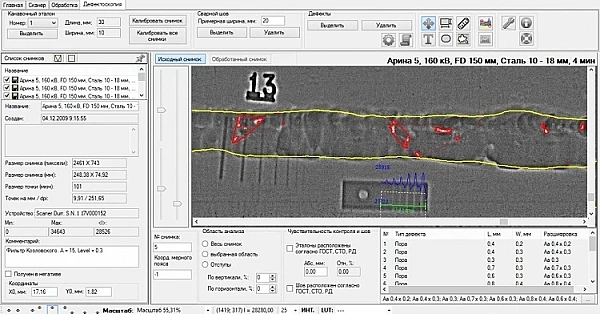 • Выявленные дефекты классифицируются и отбраковываются в соответствии с выбранным НД;